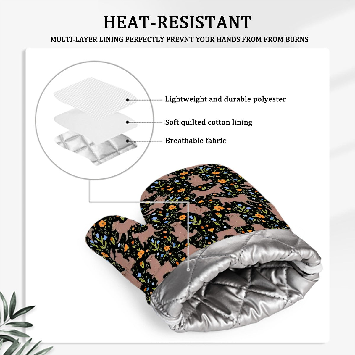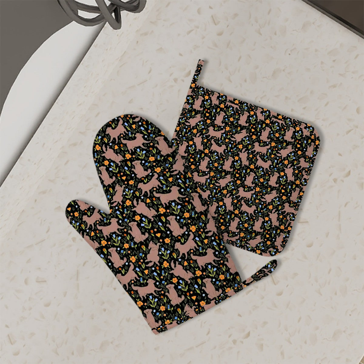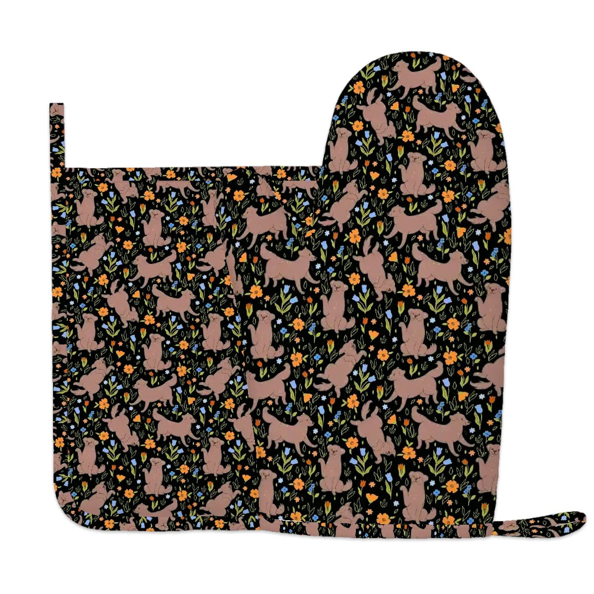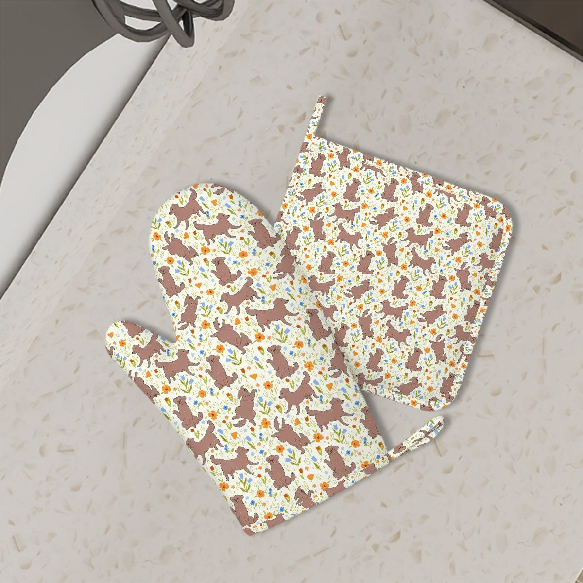 Flower Garden Chocolate Labradors Oven Mitts and Pot Holder Set