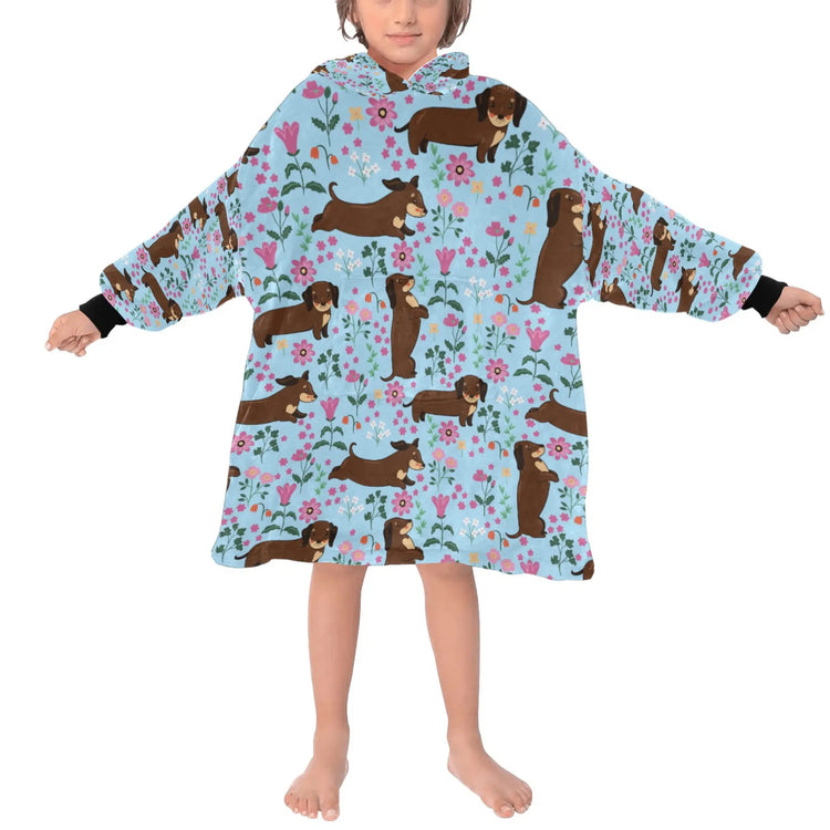 Flower Garden Chocolate Dachshund Blanket Hoodie for Kids - 3 Colors