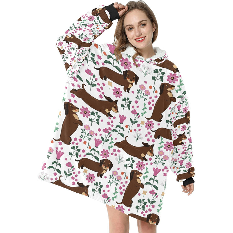 Flower Garden Chocolate Dachshund Blanket Hoodie for Women - 4 Colors
