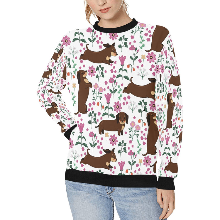 Flower Garden Chocolate Dachshunds Love Women's Sweatshirt - 4 Colors