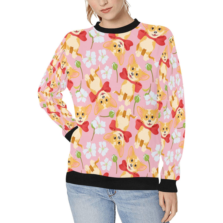 Flower Garden Long Haired Fawn Chihuahua Love Women's Sweatshirt - 4 Colors