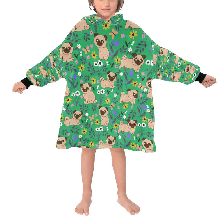 Flower Garden Pug Blanket Hoodie for Kids - 3 Colors
