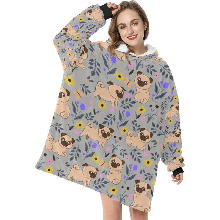 Flower Garden Pug Love Blanket Hoodie for Women - 5 Colors