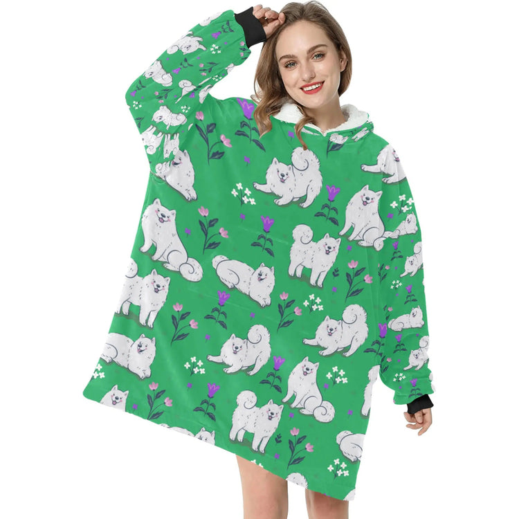 Flower Garden Samoyed Blanket Hoodie for Women - 4 Colors