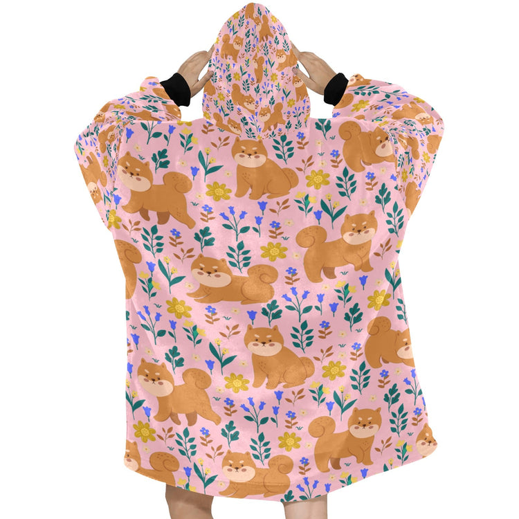 Flower Garden Shiba Inu Blanket Hoodie for Women - 4 Colors