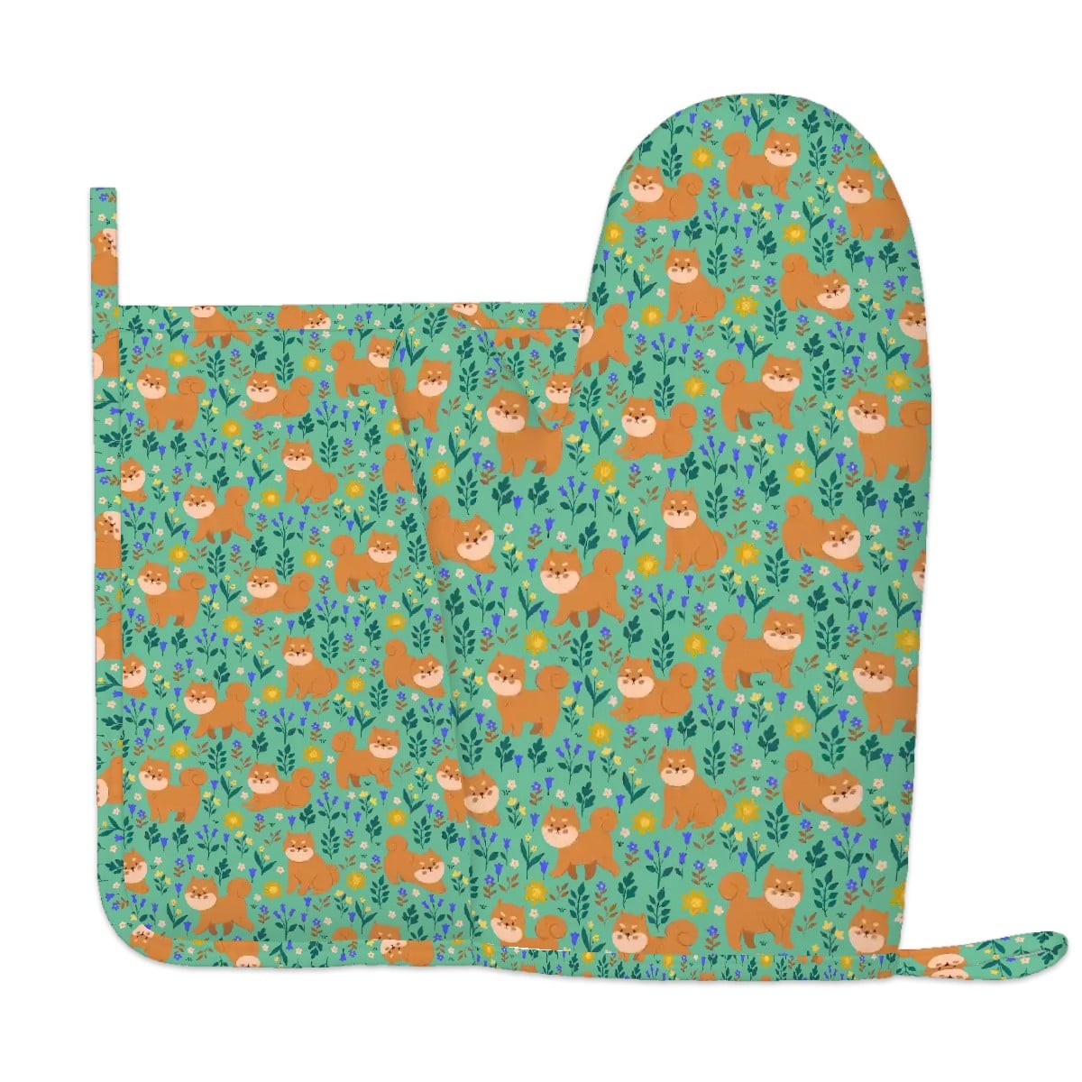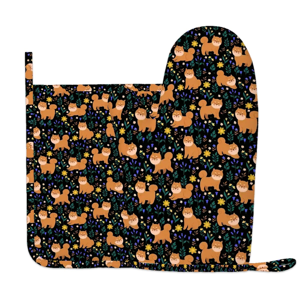 Flower Garden Shiba Inu Oven Mitts and Pot Holder Set