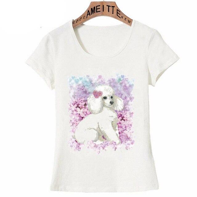 Featuring a super cute white Poodle with a flowers design. Wear this cutest t-shirt for Poodle moms yourself or gift to your Poodle-loving friends!