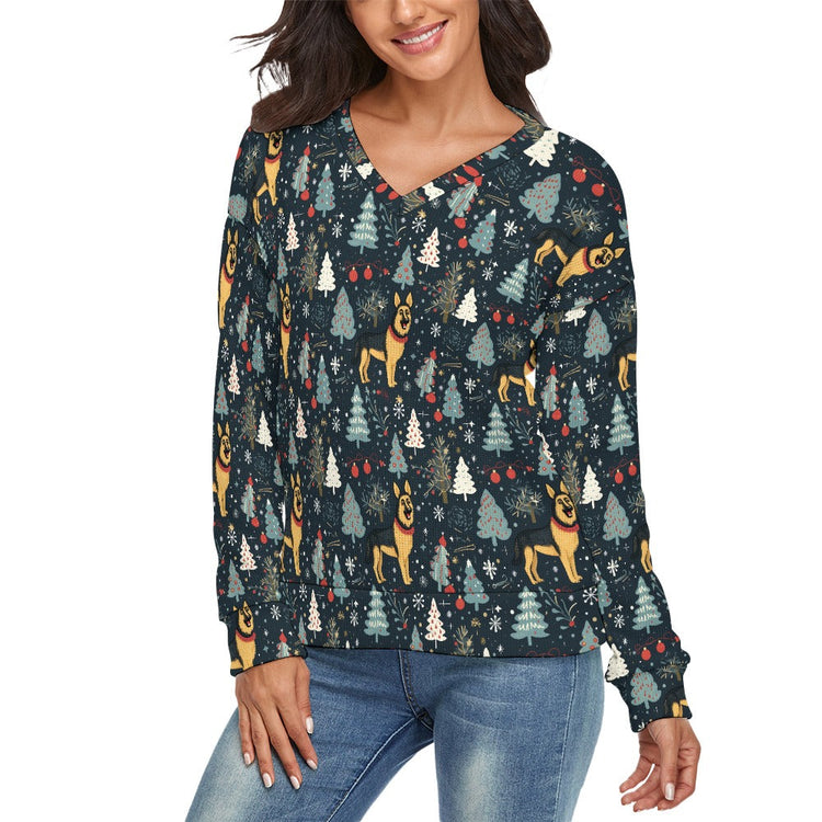 Wrap yourself in the spirit of the holidays with our German Shepherd Winter Wonderland Women's V-Neck Christmas Sweater.