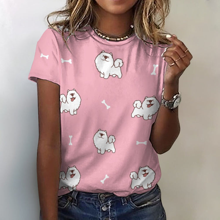 Happy Happy Samoyed Love All Over Print Women's Cotton T-Shirt - 4 Colors