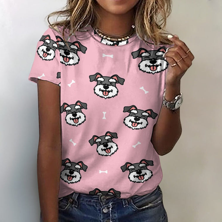 Happy Happy Schnauzer Love All Over Print Women's Cotton T-Shirt - 4 Colors