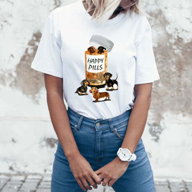 Happy Pills Dachshunds Womens T Shirt