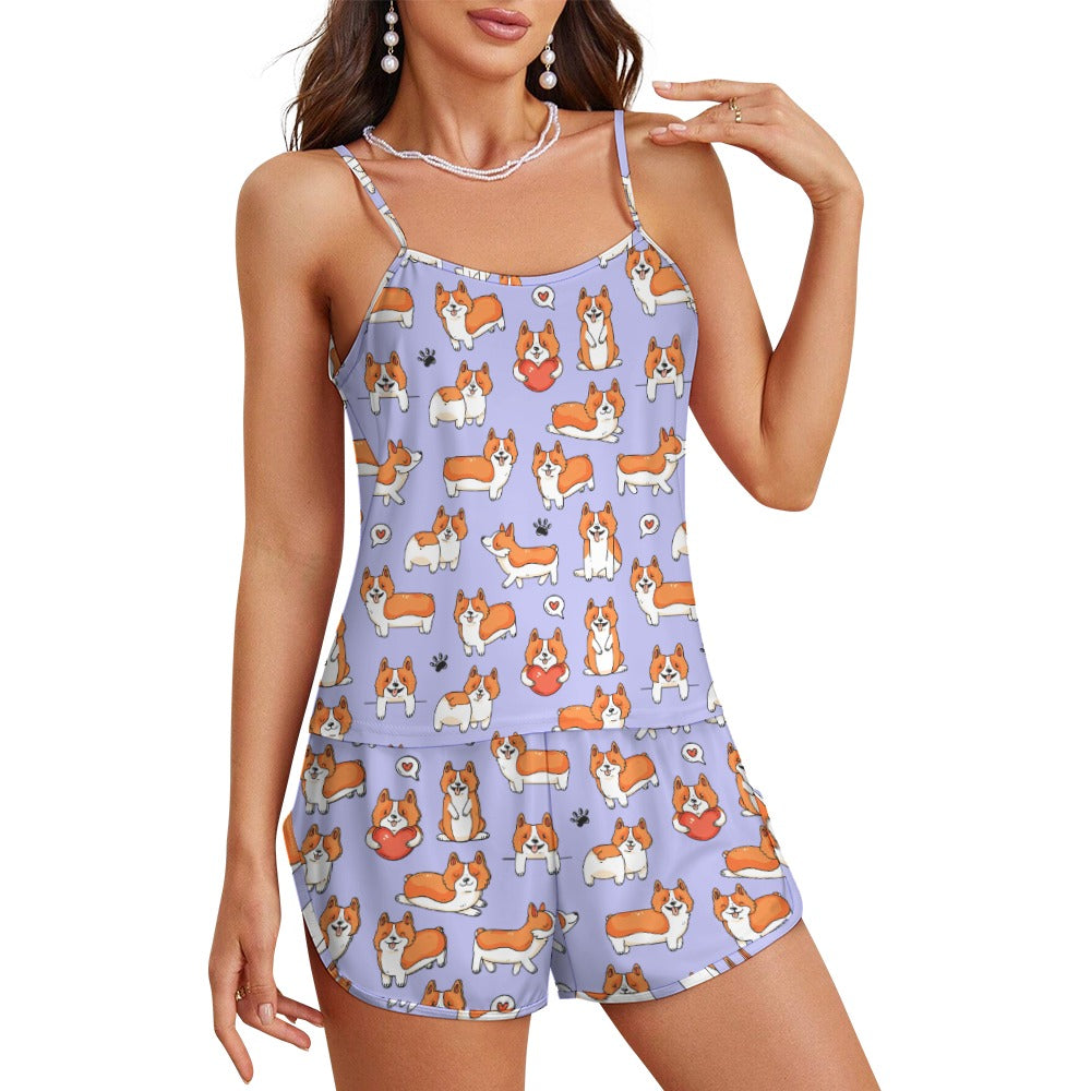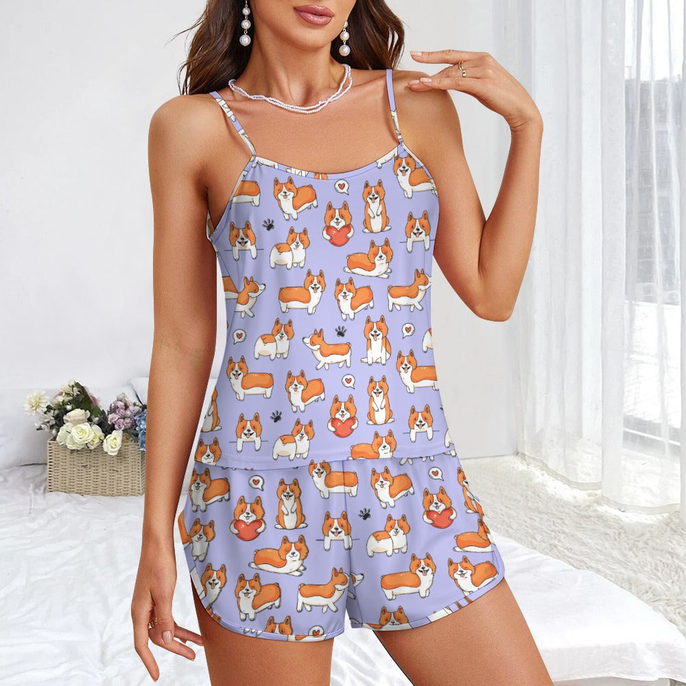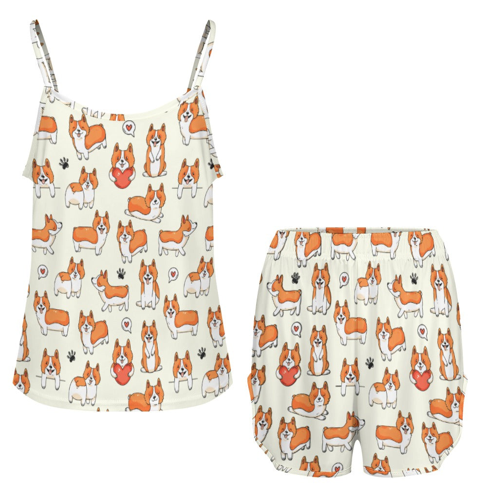 I Heart Corgi Love Women's Cami and Shorts Pajama Set-Apparel-Apparel,Corgi,Dog Mom Gifts,Pajamas-1