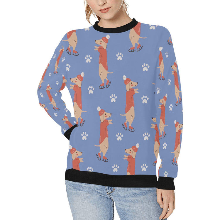 Ice Skating Red Dachshunds Love Women's Sweatshirt - 5 Colors