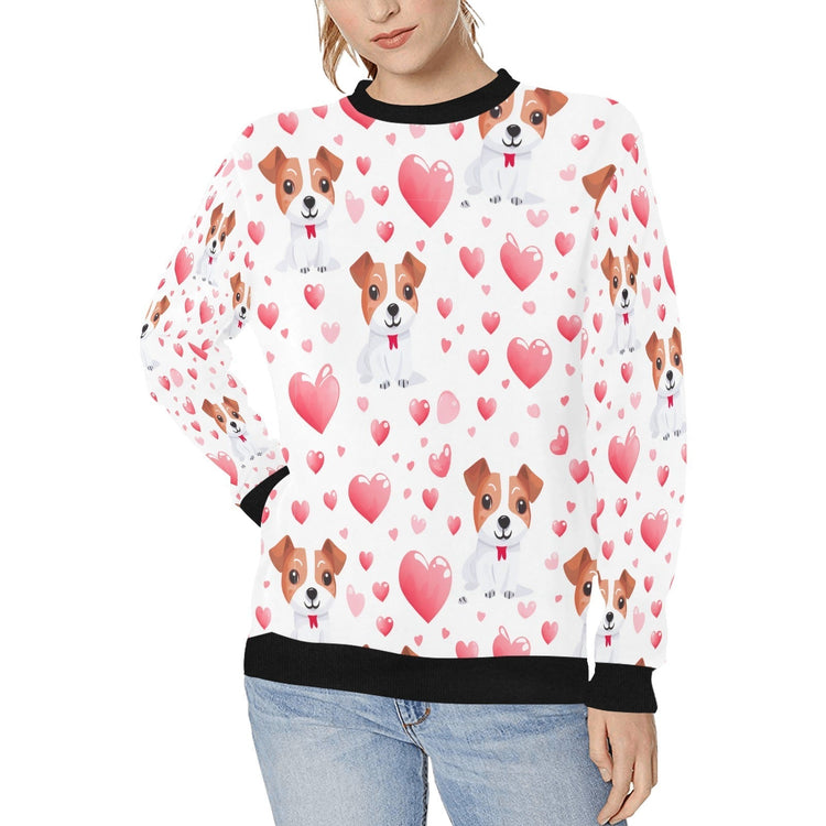 Embodying the energetic and affectionate nature of Jack Russell Terriers, this sweatshirt is a true reflection of the special bond between you and your four-legged friend. Flaunt your Jack Russell-loving personality with this charming apparel featuring the most adorable Jack Russell Terrier puppies, complemented by red hearts that express love as endless as your pup's energy.