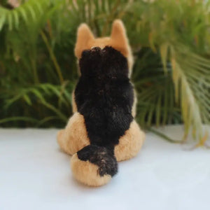 This beautifully crafted plush captures the essence of the beloved German Shepherd, featuring a tan body with striking black saddle markings.
