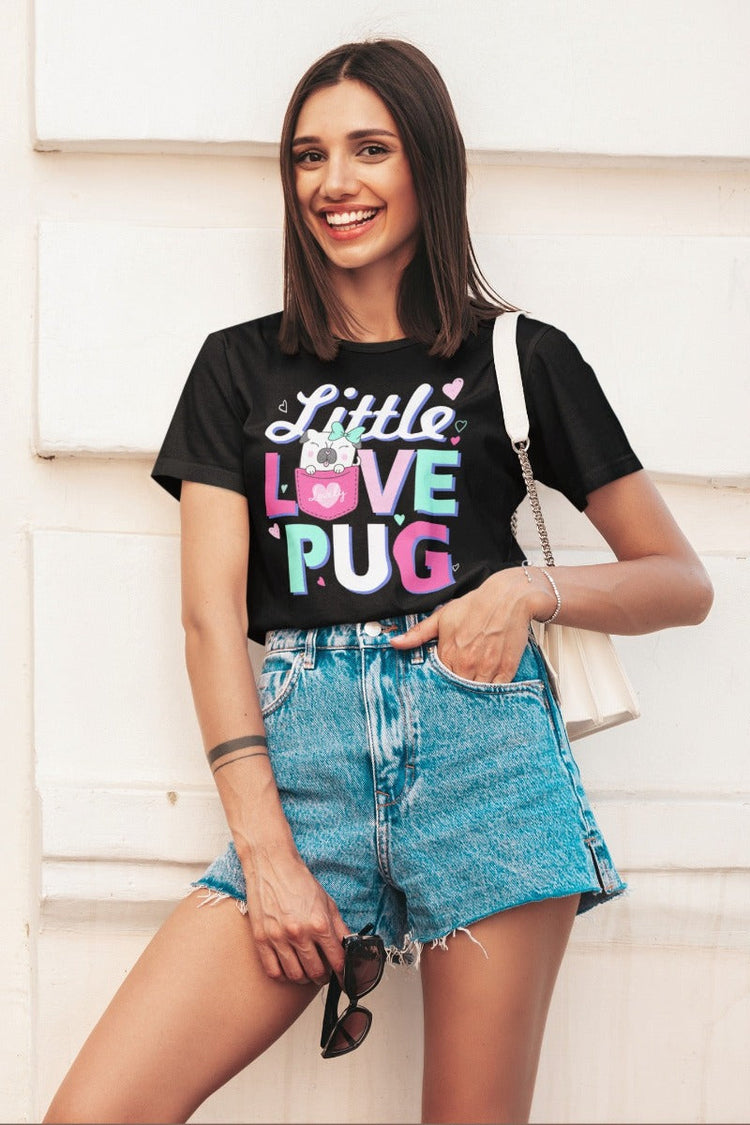Indulge in the adorable charm and spread the love with our "Little Love Pug" Women's Cotton T-Shirt. Get yours today and let the world know just how much you adore Pugs!