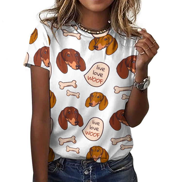 Live Love Woof Dachshunds All Over Print Women's Cotton T-Shirt - 5 Colors