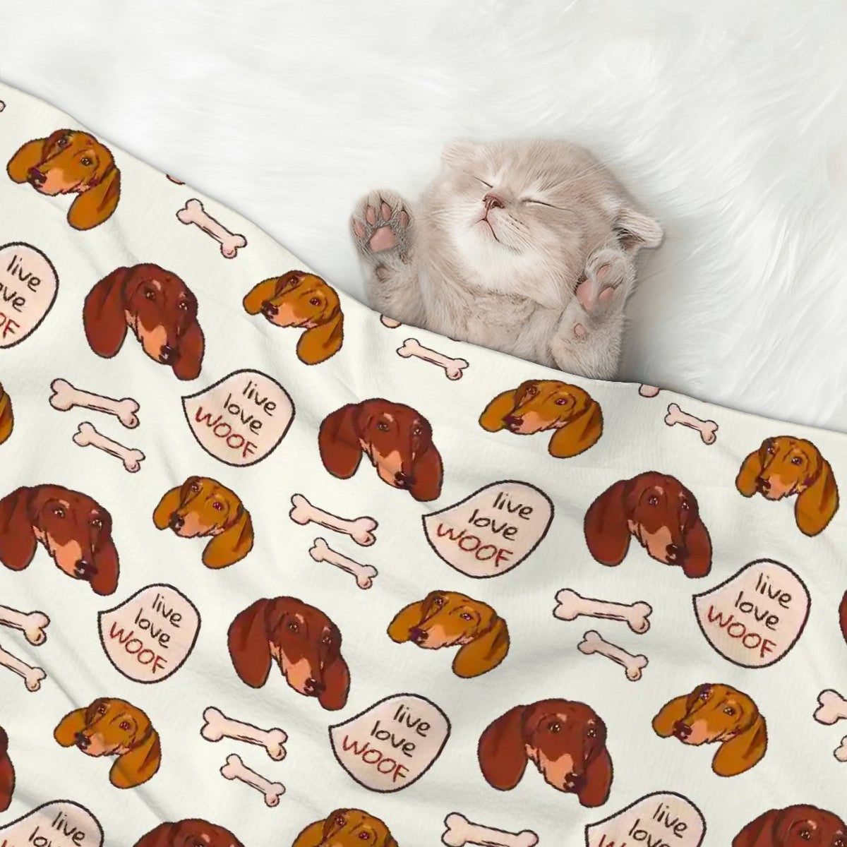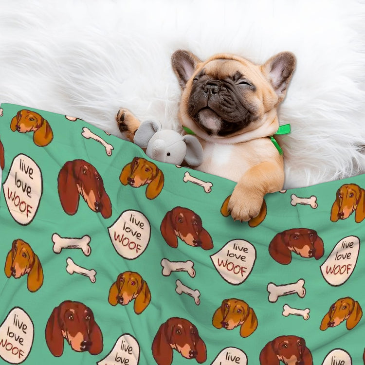 Wrap their Dachshund love in warmth with the Live Love Woof Dachshunds Blanket for Dog.