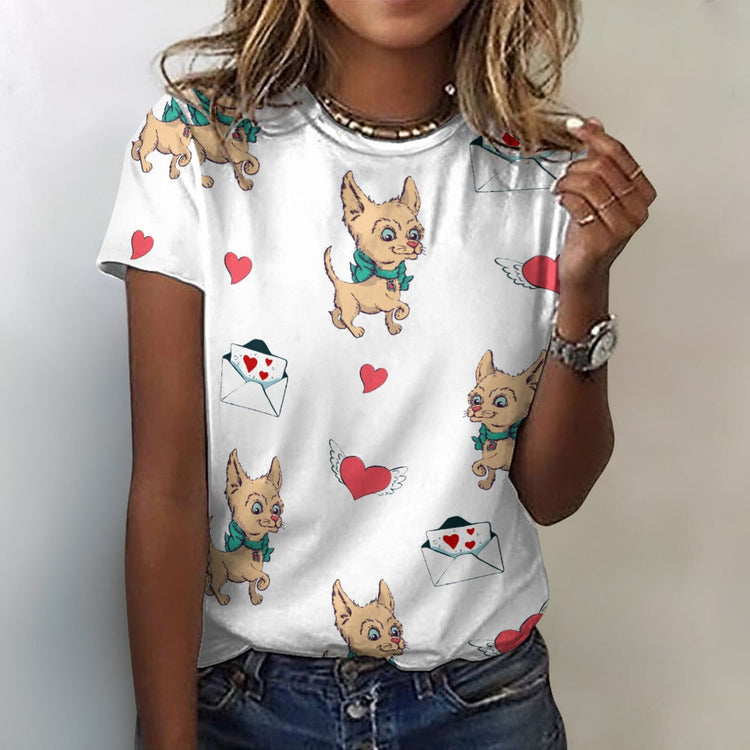 Love Letter Fawn Chihuahuas All Over Print Women's Cotton T-Shirt - 4 Colors