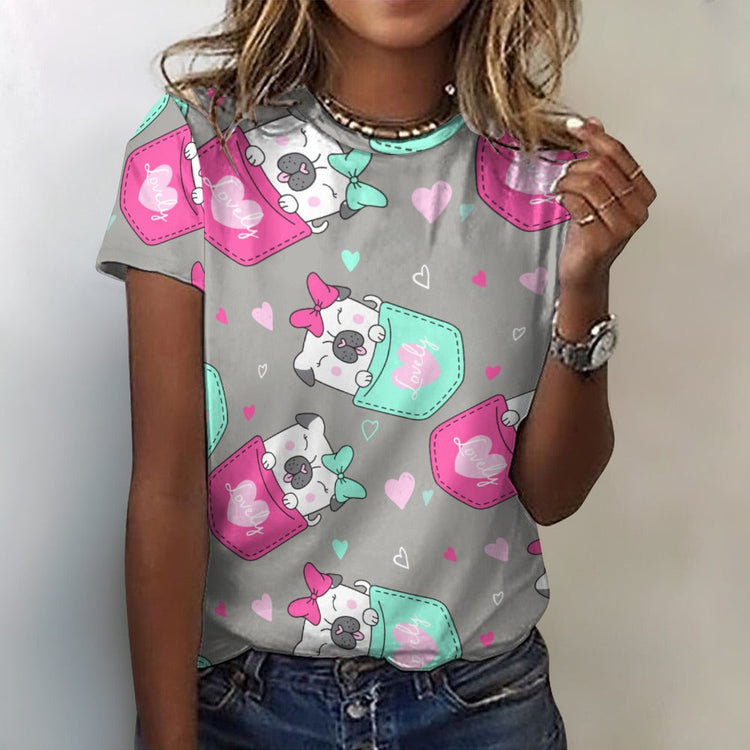 Lovely Pocket Pug Love All Over Print Women's Cotton T-Shirt - 4 Colors