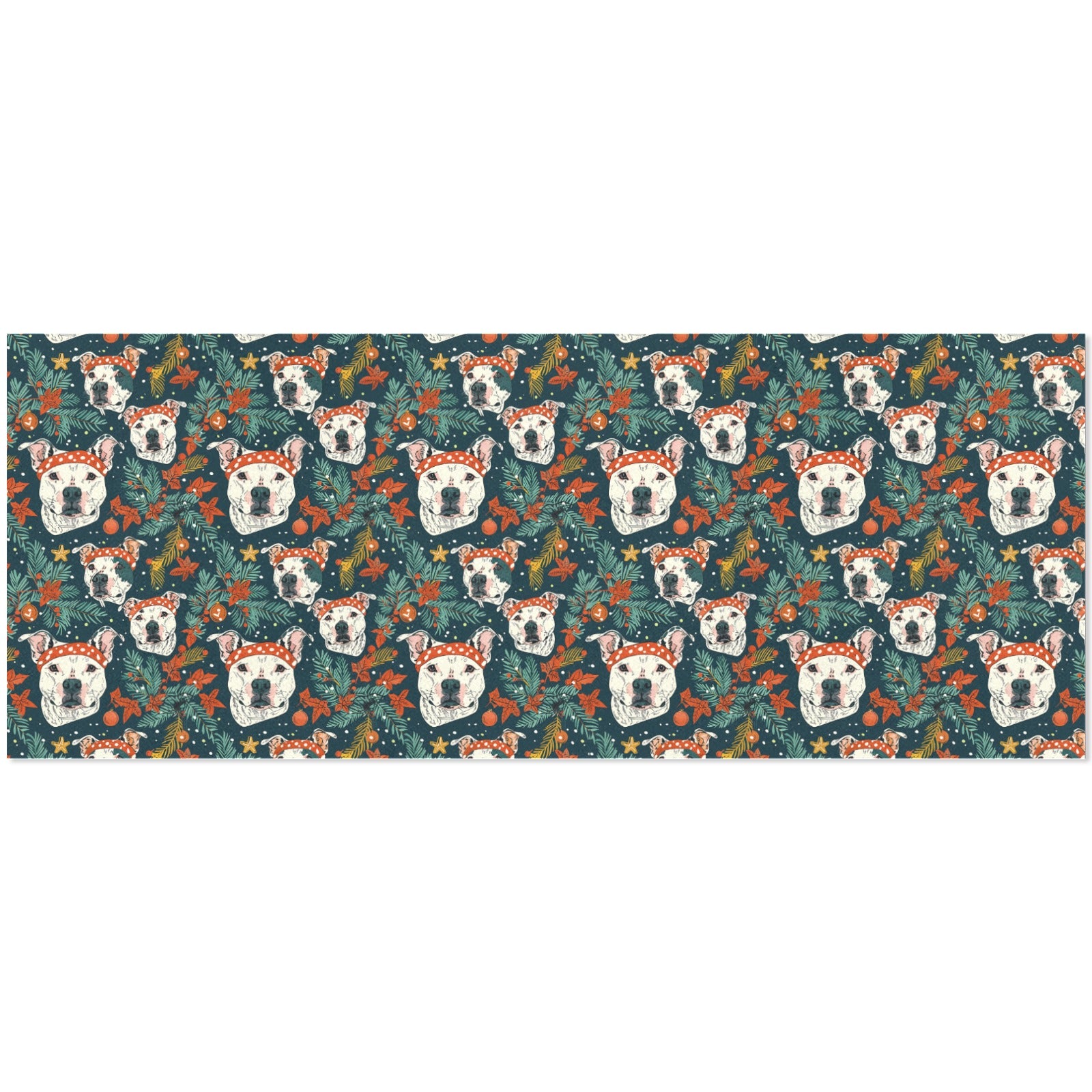 Each roll showcases Pit Bulls wearing playful red bandanas against a dark, starry night. Traditional Christmas symbols like holly berries, poinsettias, and delicate snowflakes create a magical winter atmosphere.