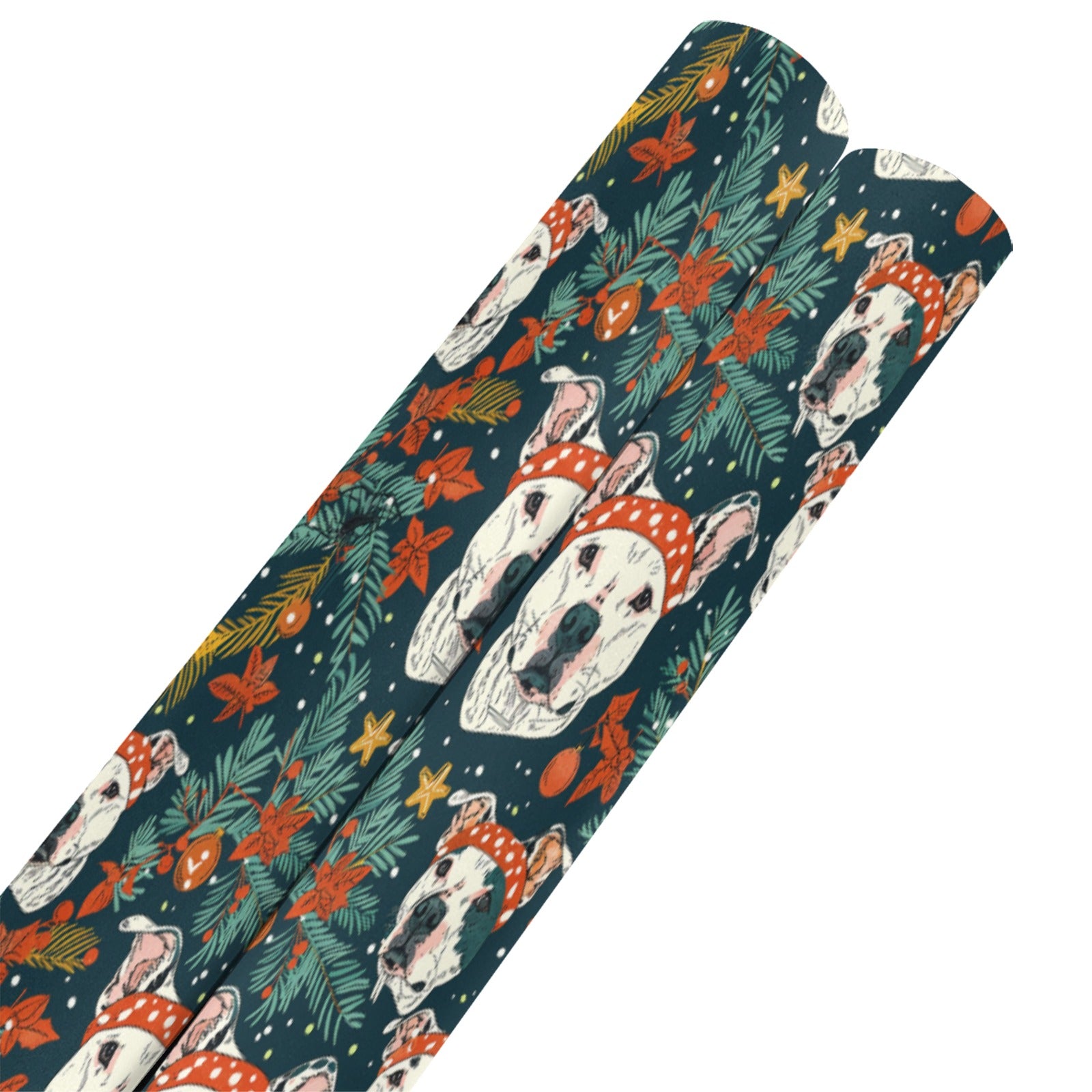 Merry and Bright White Pit Bull Christmas Gift Wrapping Paper - 2 Rolls