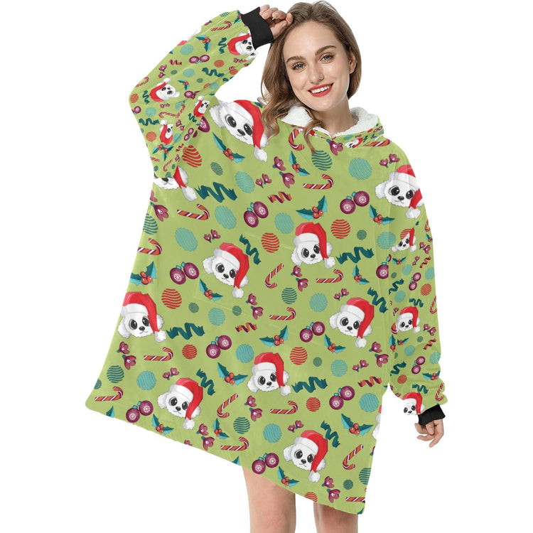 Merry Christmas Bichon Frise Blanket Hoodie for Women - 4 Colors