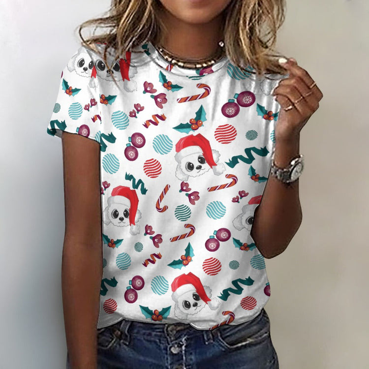 Merry Christmas Maltese Love All Over Print Women's Cotton T-Shirt - 4 Colors