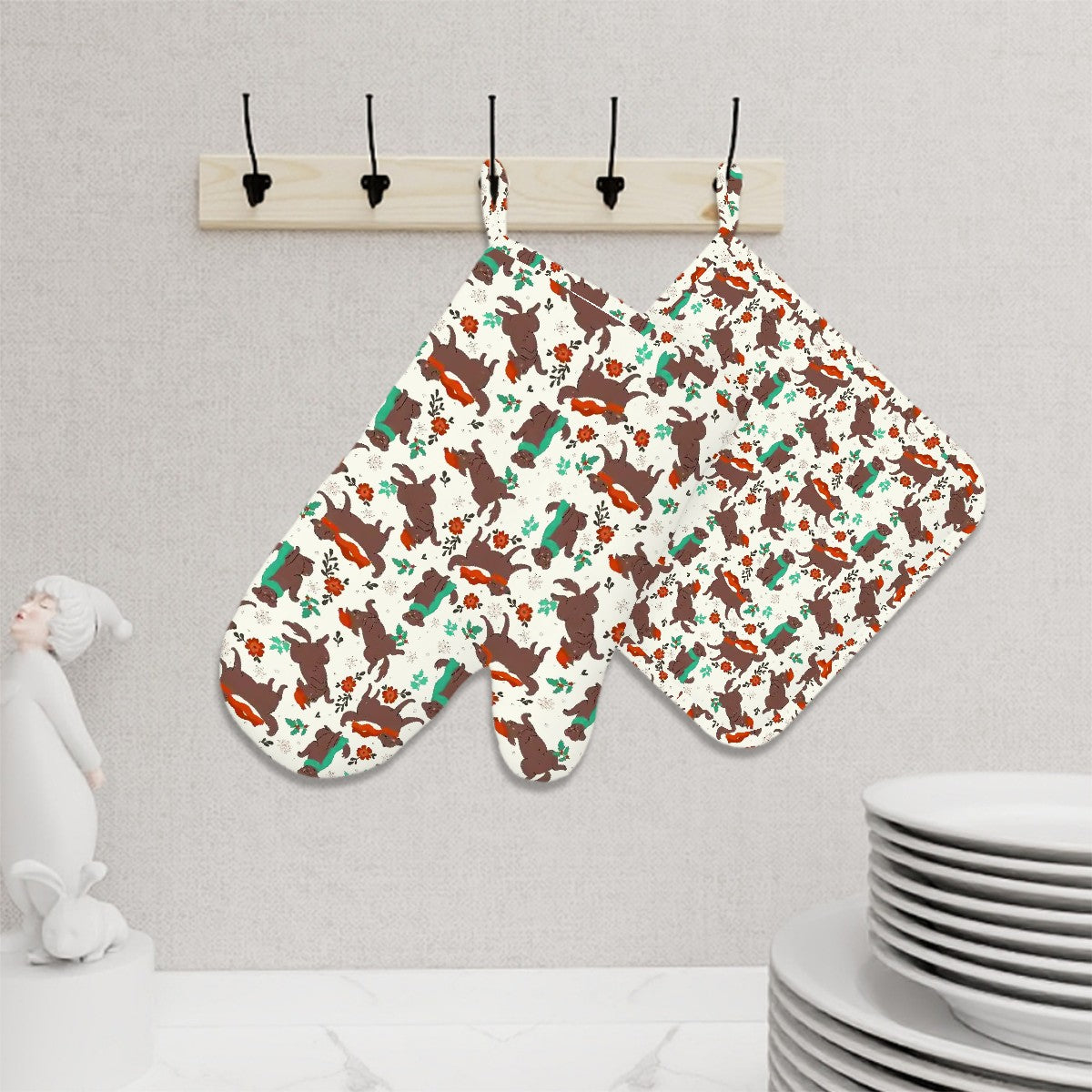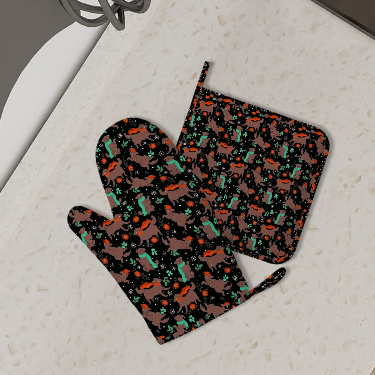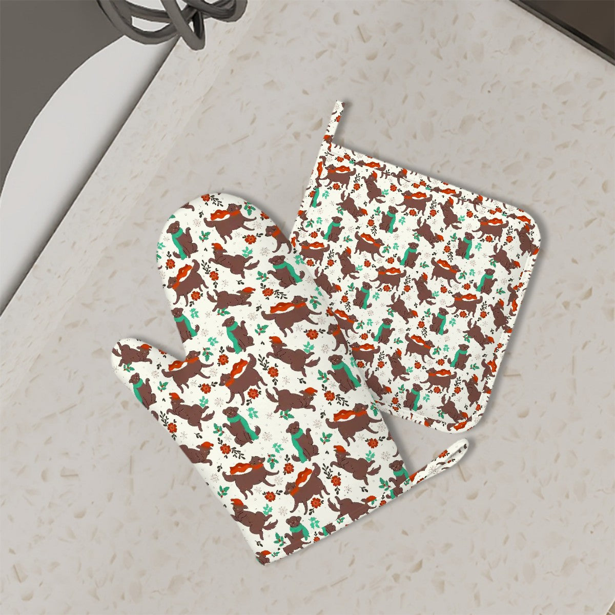 Merry Merry Chocolate Labradors Oven Mitts and Pot Holder Set-Kitchen Decor-Accessories,Chocolate Labrador,Dog Mom Gifts-1