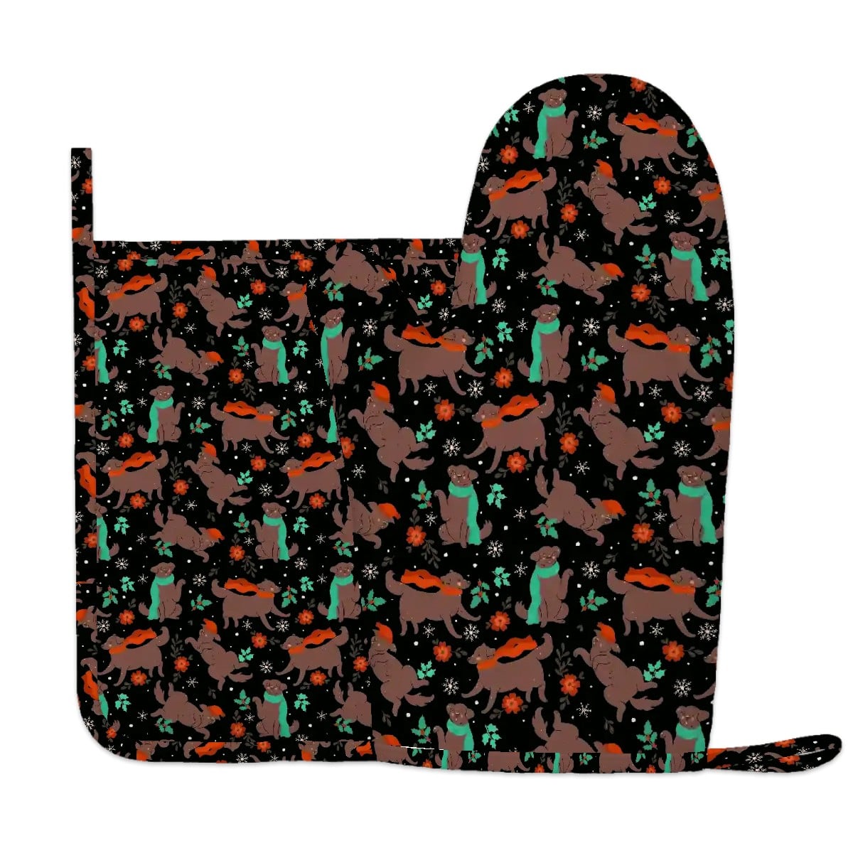 Merry Merry Chocolate Labradors Oven Mitts and Pot Holder Set-Kitchen Decor-Accessories,Chocolate Labrador,Dog Mom Gifts-7