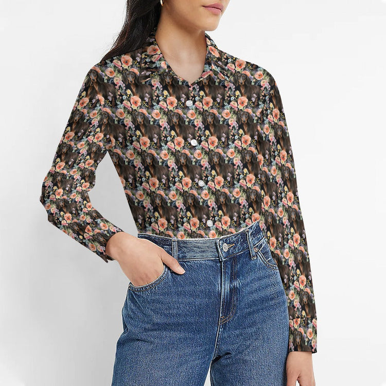 Moonlight Flower Garden Black and Tan Dachshunds Women's Shirt