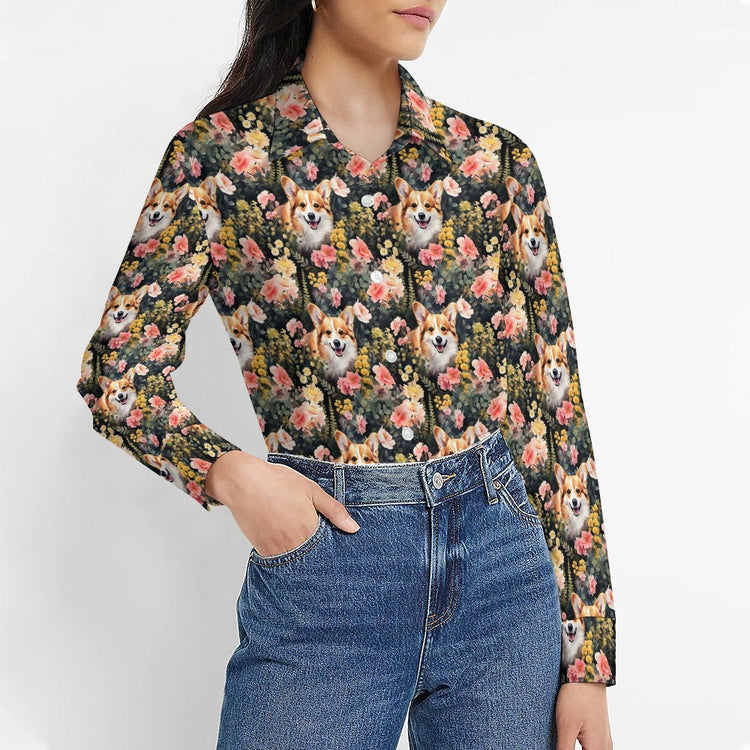 Moonlight Flower Garden Corgis Women's Shirt - 2 Designs