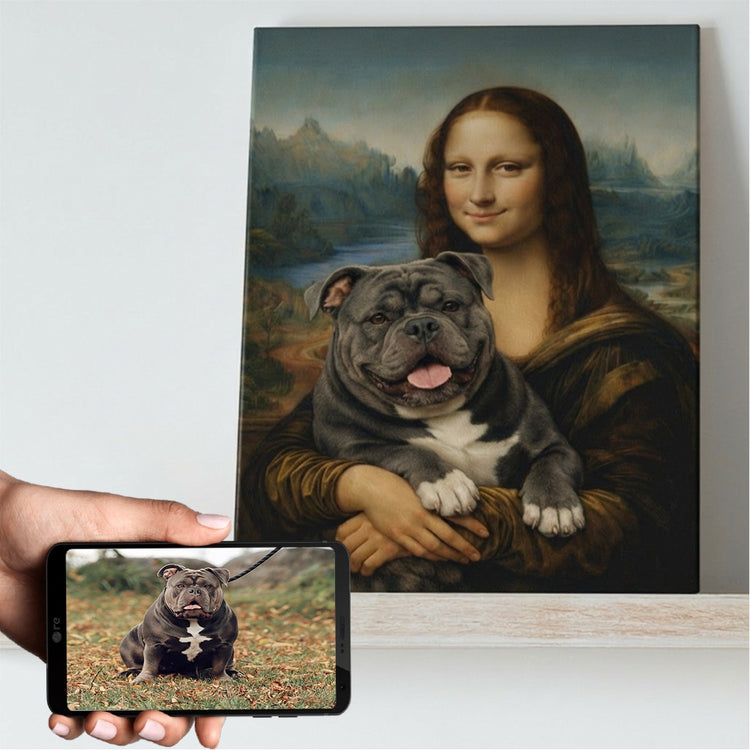 My American Bully with Mona Lisa Personalized Renaissance Dog Portrait