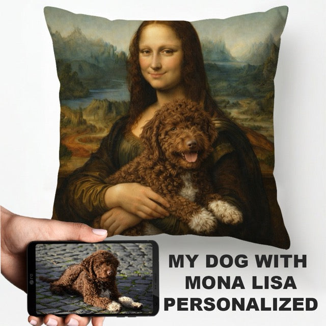 My Spanish Water Dog with Mona Lisa - Personalized Pillowcase