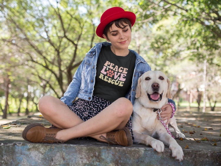 Looking for the perfect gift for a dog mom who is also passionate about animal rescue? Look no further than our "Peace Love Rescue Women's T-Shirt."