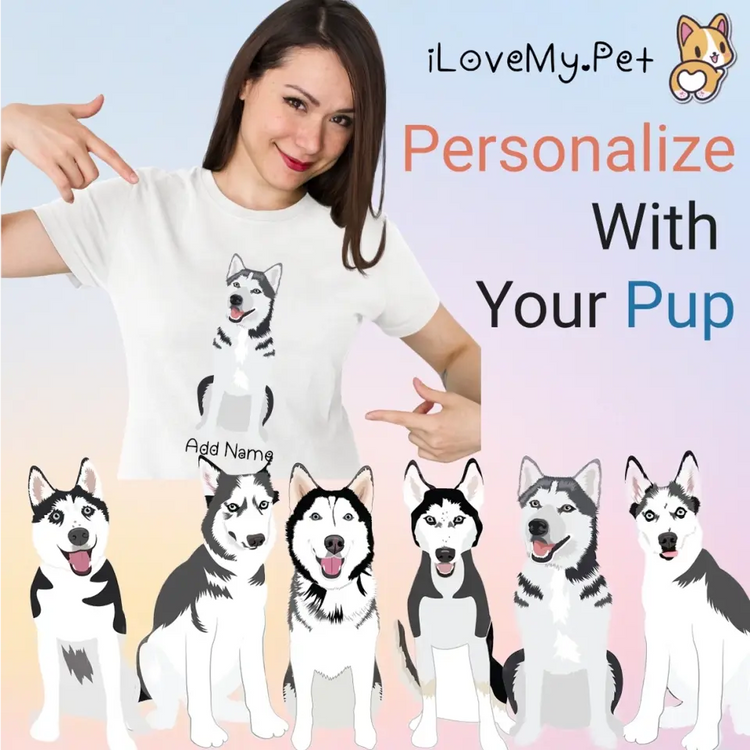 This unique T-shirt allows you to customize it with the coat color of your pup and add their name for a personal touch. Our true-to-breed color options ensure that the shirt perfectly matches your Husky's real coat.