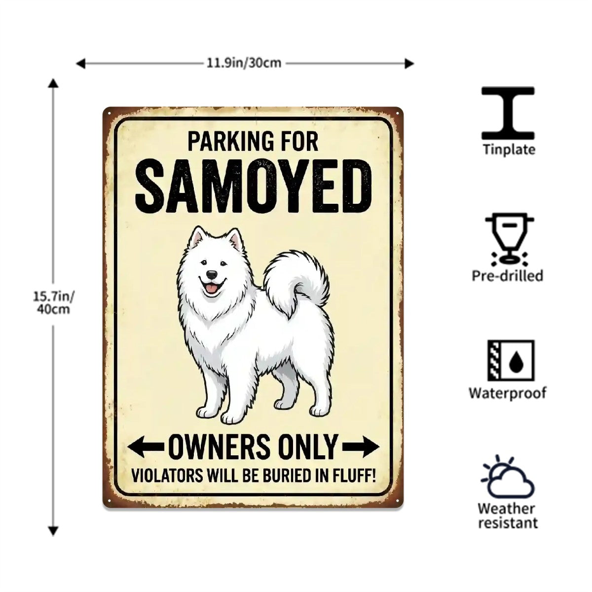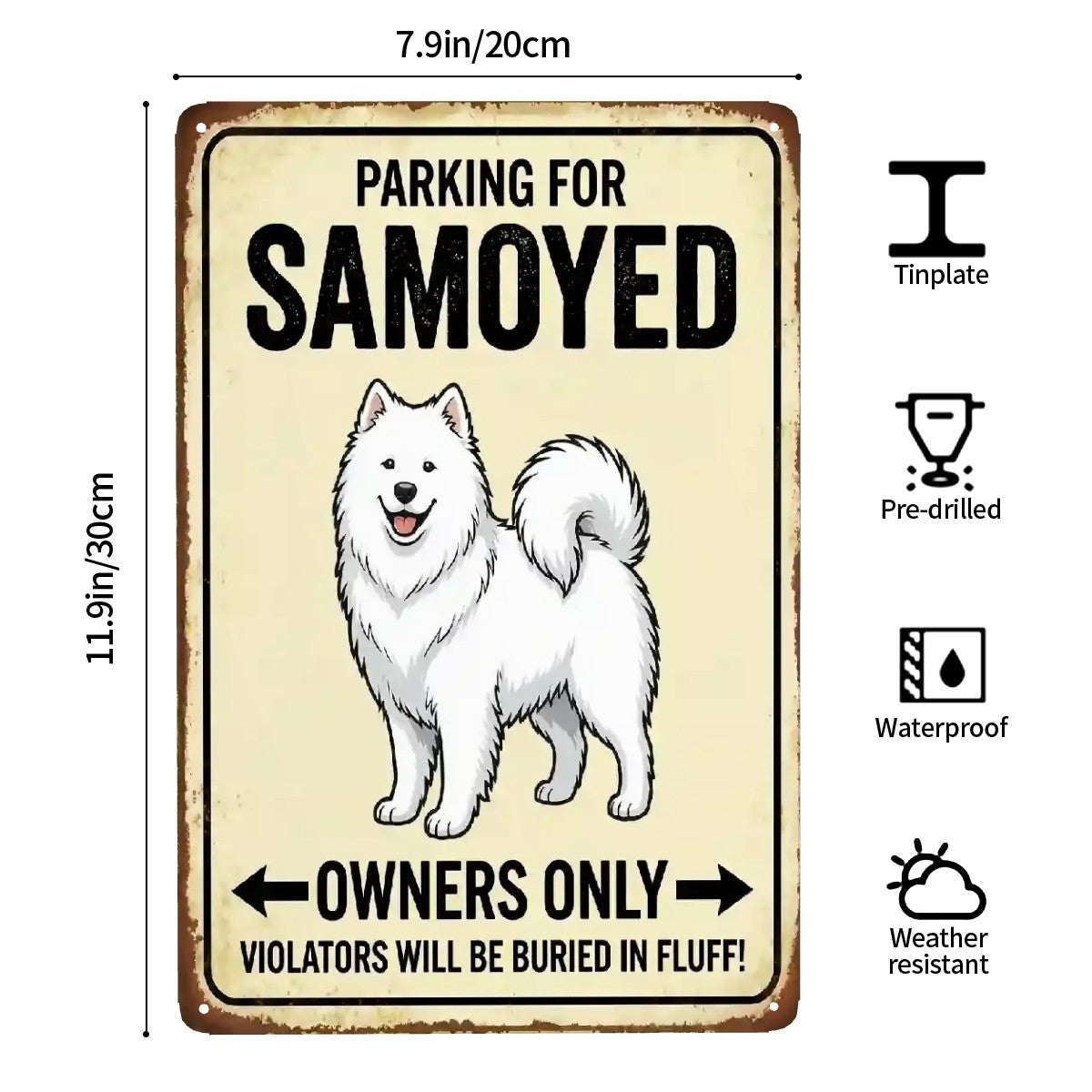 From the Heart: Thoughtful Gifts for Samoyed lovers, this funny tinplate sign turns everyday parking into a warm, personal moment. Add your dog’s photo to match their coat color, and give a keepsake that celebrates that special bond between Samoyed and their humans.
