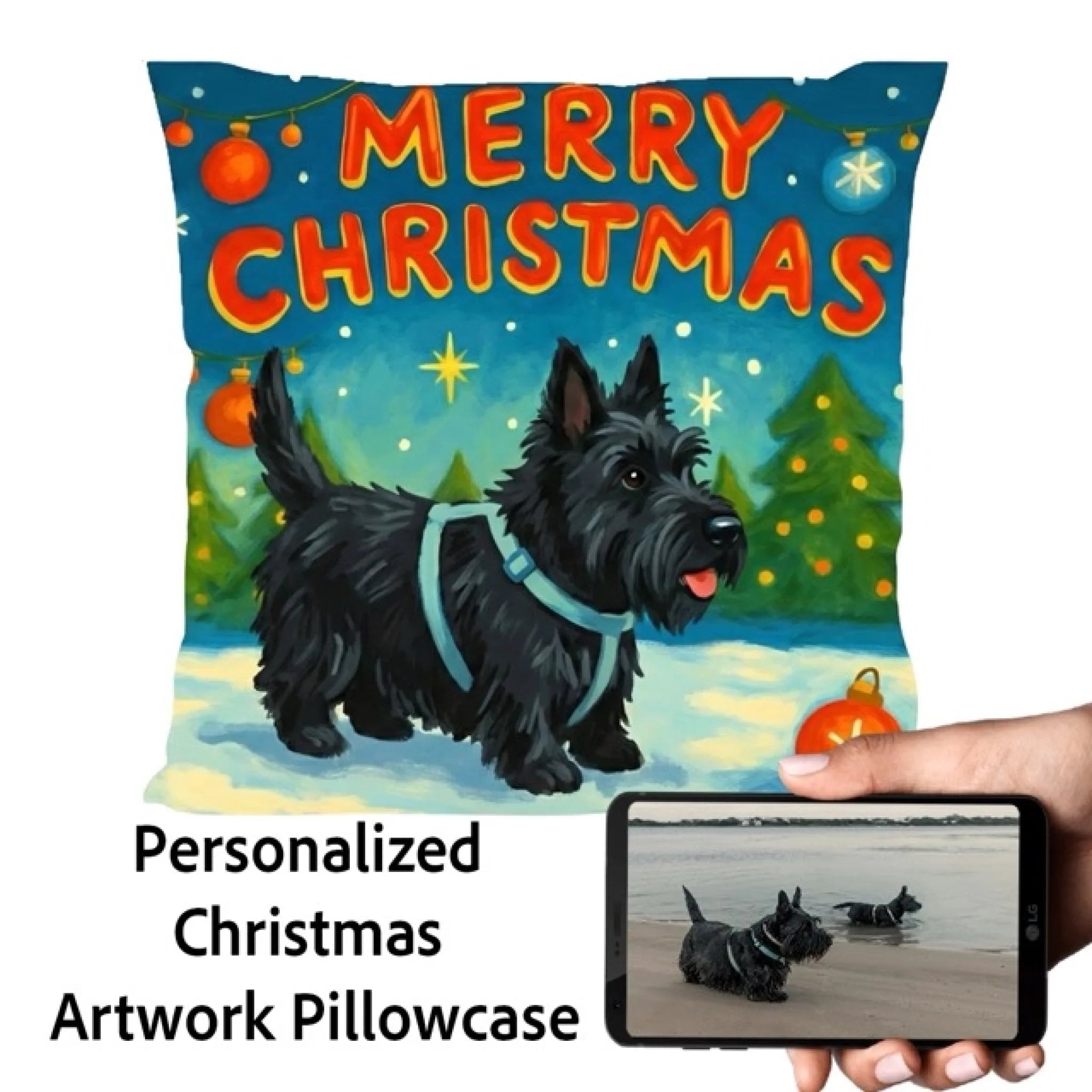 Personalized Scottish Terrier Christmas Pillowcase - Upload Photo