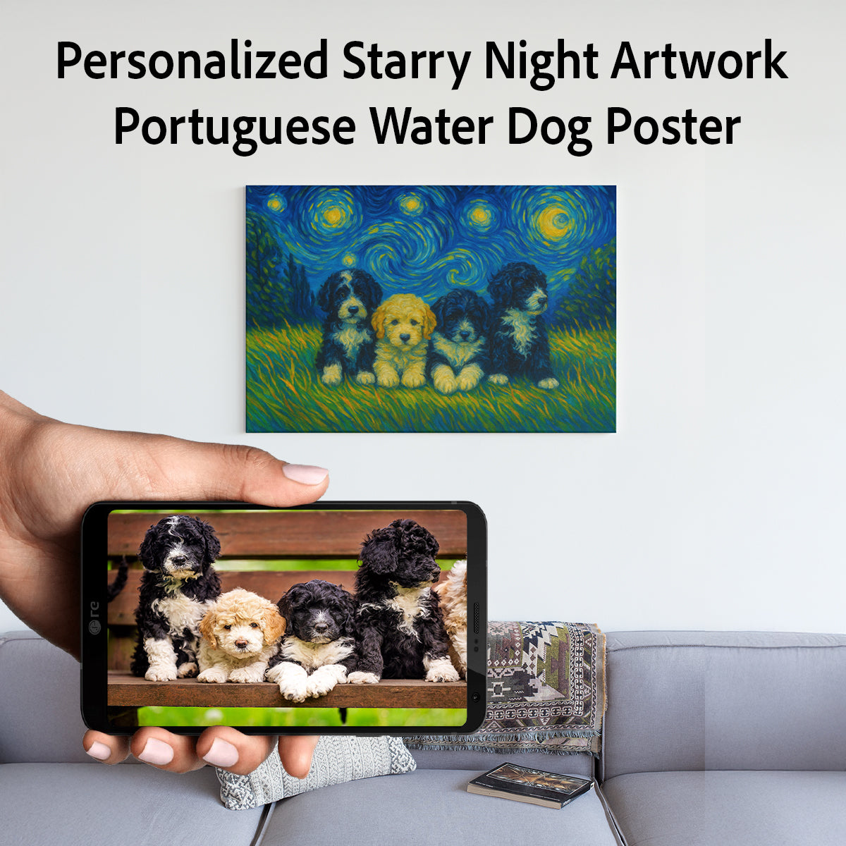 Transform your cherished memories into stunning art with our Personalized Starry Night Artwork featuring your beloved Portuguese Water Dog. This unique piece captures the essence of your furry friend, creating a heartfelt tribute that will warm your home and heart.