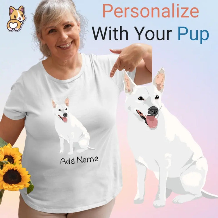 Showcase your love for your devoted companion with our Personalized White Swiss Shepherd T-Shirt for Women.