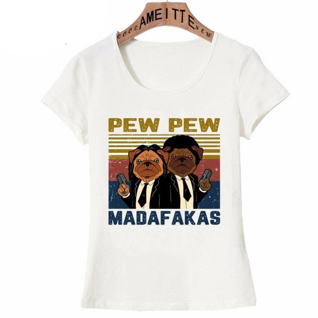Pew Pew Pulp Fiction Pugs Womens T Shirts
