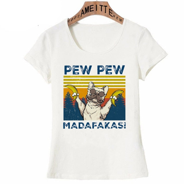 Pew Pew White French Bulldogs Women's T-Shirts - Unleash Your Frenchie Love with Hilarious Style!