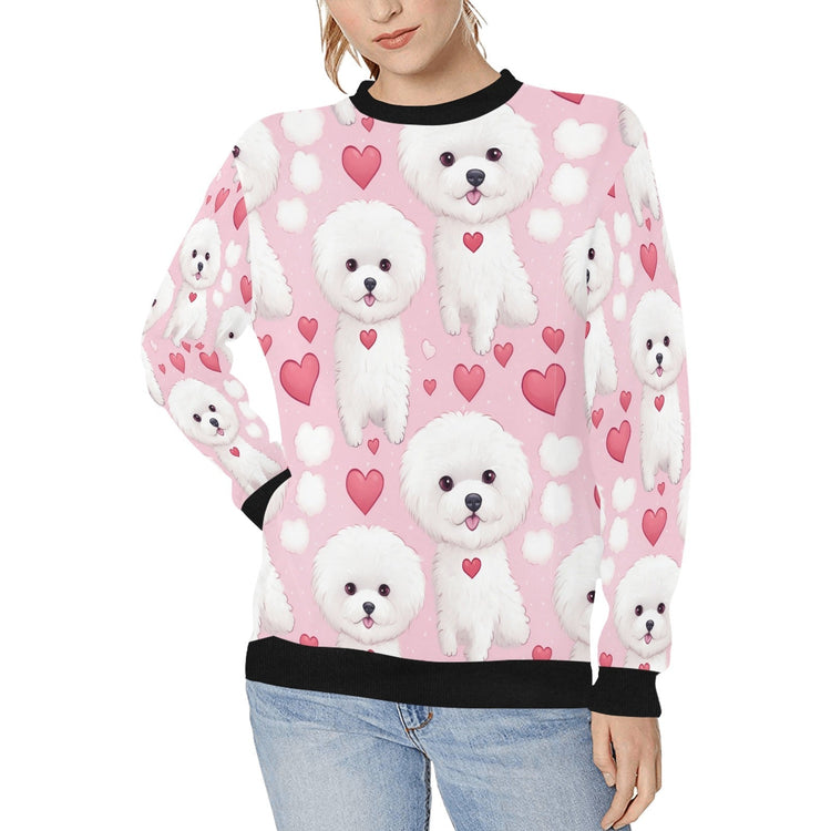 Embrace the warmth of love and loyalty with our Pink Hearts and Bichon Frise Love Women's Sweatshirt.