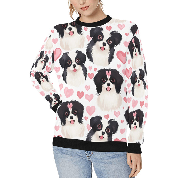 Celebrate your love for Japanese Chins with our cozy Pink Hearts and Japanese Chins Women's Sweatshirt.