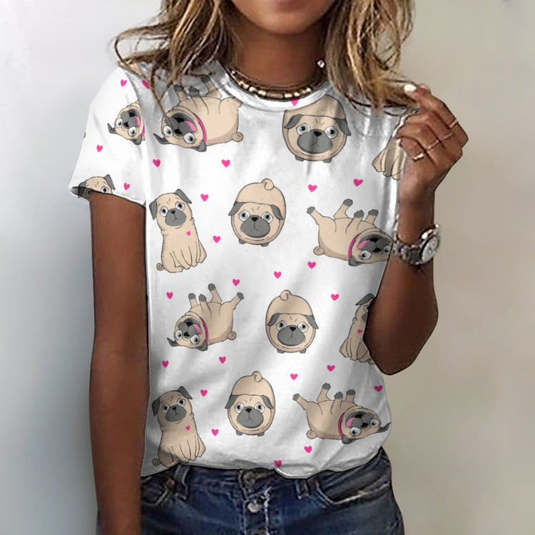 Pink Hearts Pug Love All Over Print Women's Cotton T-Shirt - 4 Colors