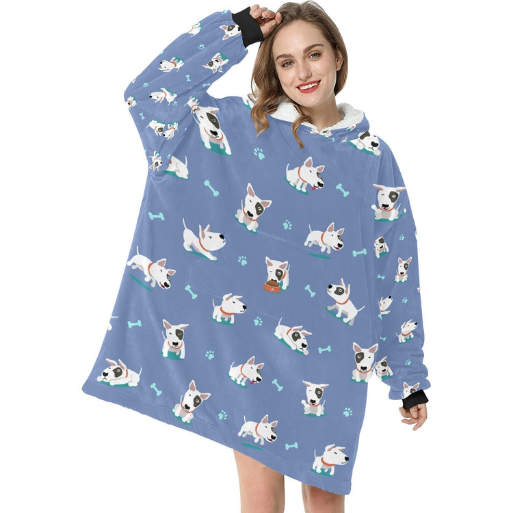 Embrace comfort and style with our Playful Bull Terrier Love Blanket Hoodie for Women, available in 4 captivating colors.