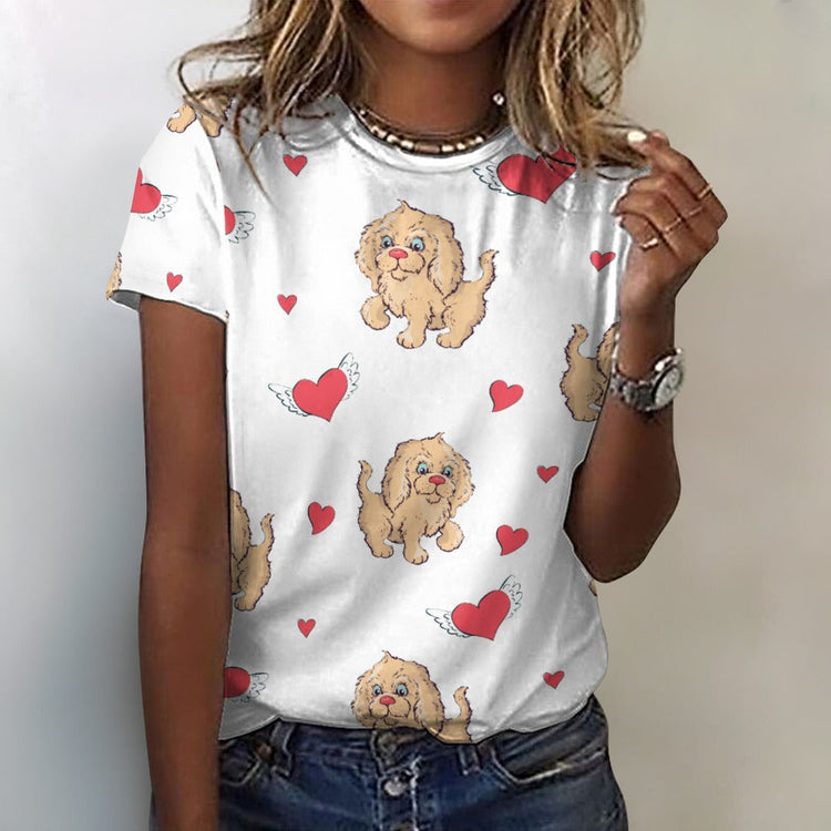 Precious Goldendoodle Love All Over Print Women's Cotton T-Shirts - 4 Colors