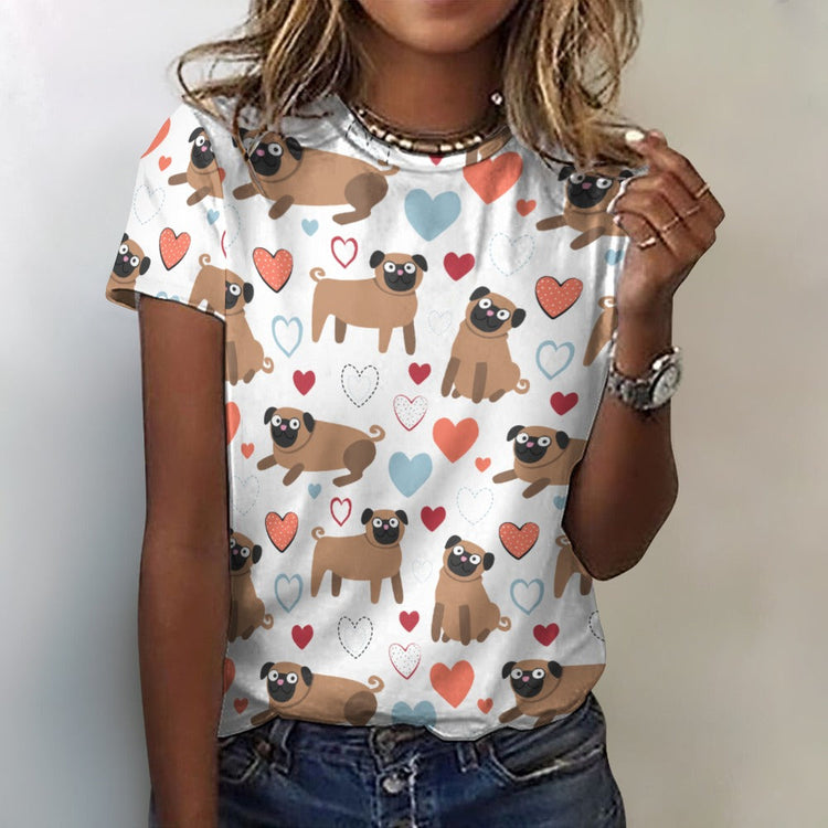 Pugs with Multicolor Hearts All Over Print Women's Cotton T-Shirt - 4 Colors