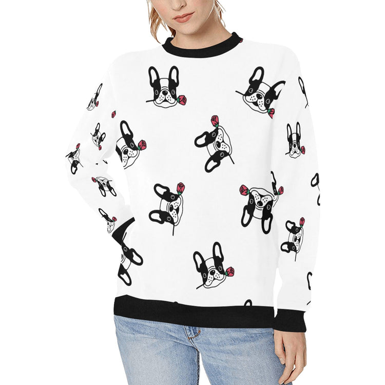 Red Rose Pied Black and White Frenchies Women's Sweatshirt - 4 Colors