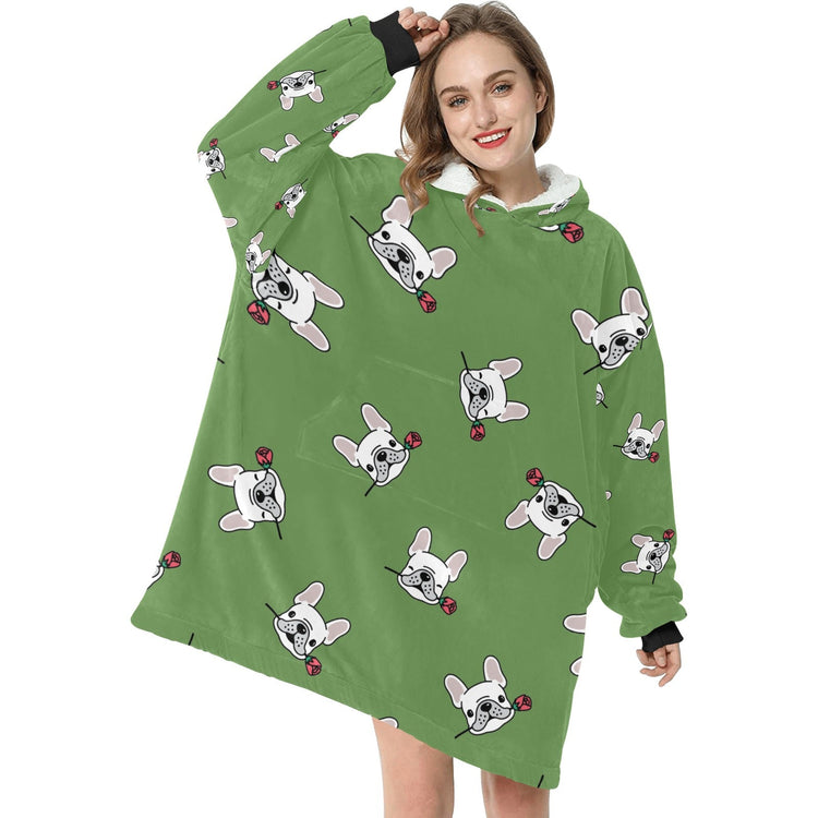 Red Rose White Frenchies Love Blanket Hoodie for Women - 4 Colors